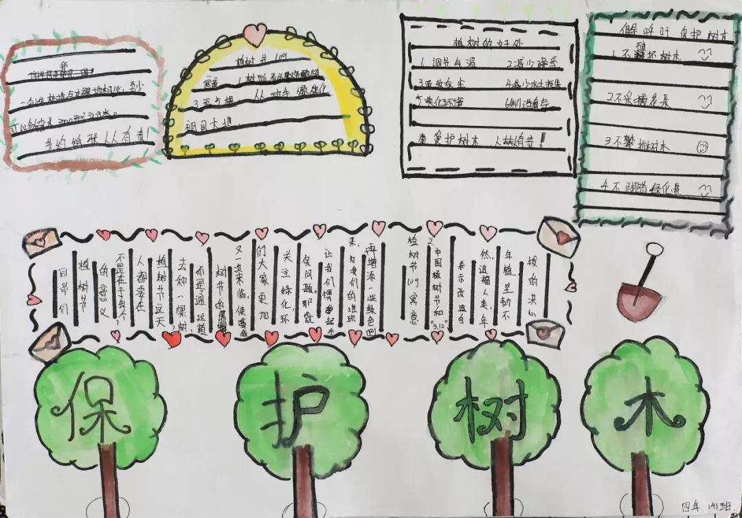 每一张手抄报皆是全班同学智慧的结晶,他们以植树节活动为切入点,把“植树、护树、爱绿”的生态文明观念融入在每一幅画与字里行间之中。